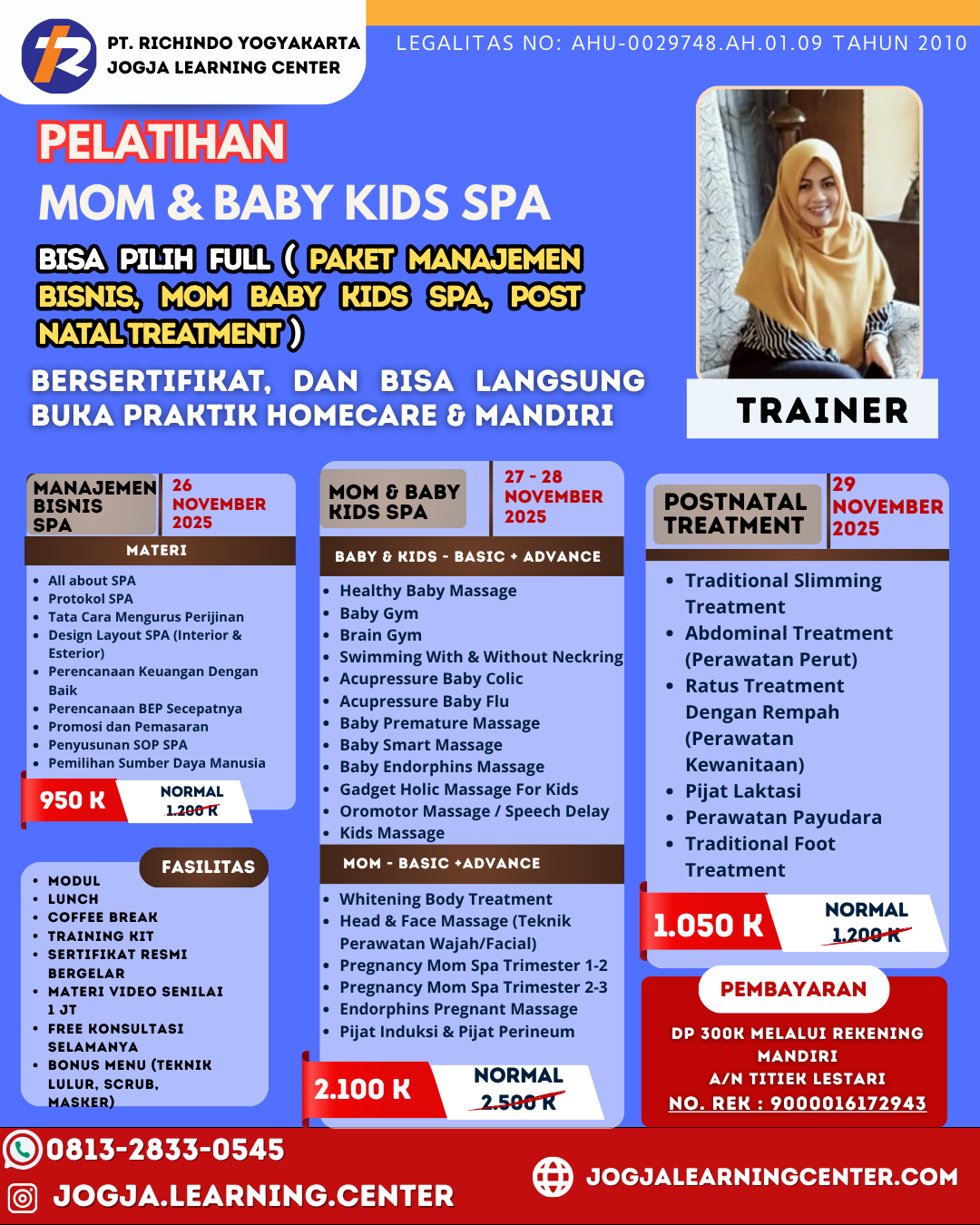 Pelatihan Manajemen Bisnis SPA, Mom Baby Kids SPA, dan Post-Natal Treatment hadir di November 2025! Pelajari semua yang Anda butuhkan untuk sukses di dunia SPA yang berkembang pesat. Jangan sampai ketinggalan! 💐
